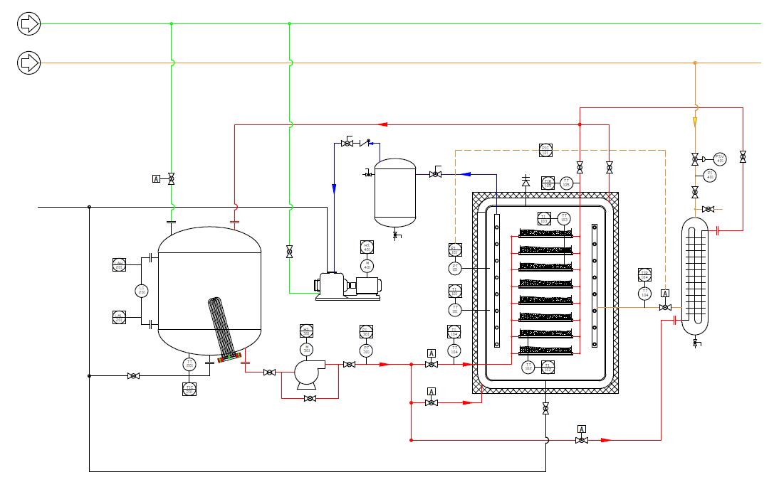 設(shè)備管路系統(tǒng)由控制閥門、真空泵、過濾器、安全閥、疏水閥等專用閥件構(gòu)成。關(guān)鍵部件為控制閥門和真空系統(tǒng)。